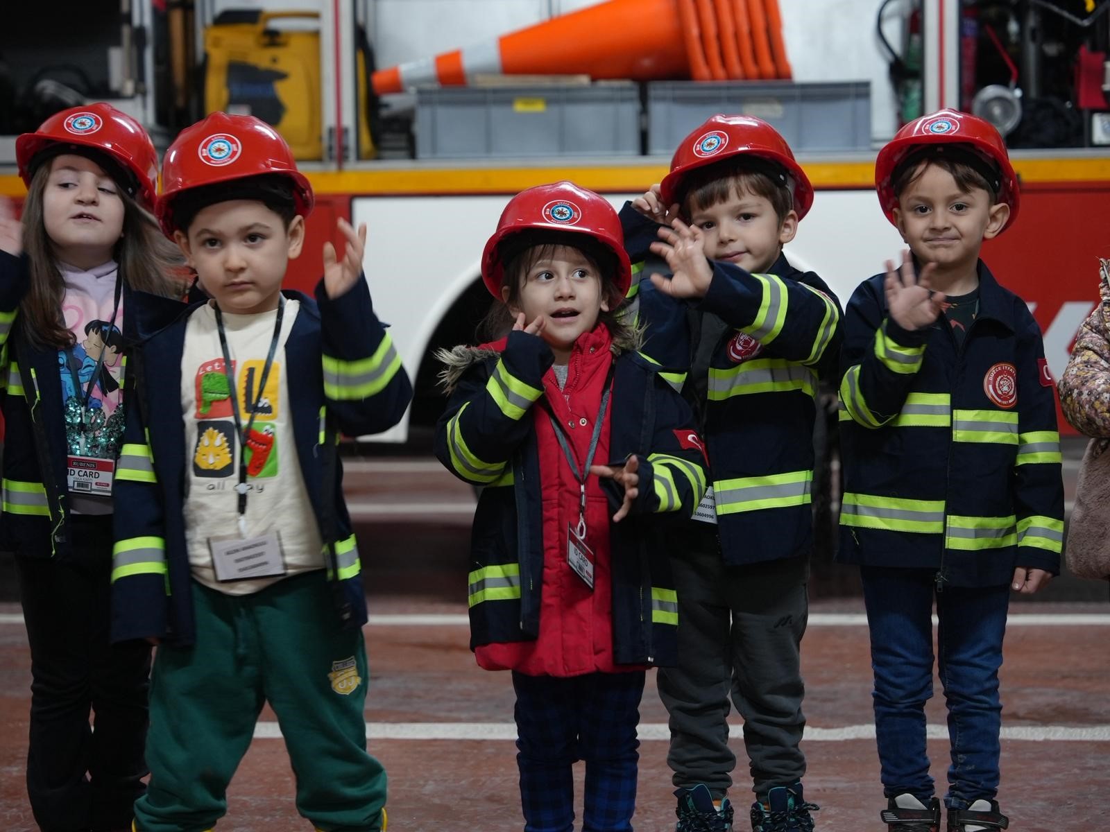 Kendileri için hazırlanan itfaiyeci kıyafetlerini giyerek baret takan miniklere, itfaiye araçları ve ekipmanlarının yanı sıra acil durumlar ve müdahale yöntemleri hakkında da bilgiler verilirken, öğretici ve eğlenceli zaman geçiren miniklere, ziyaret sonunda "Minik İtfaiyeci Başarı Belgesi" takdim edildi.