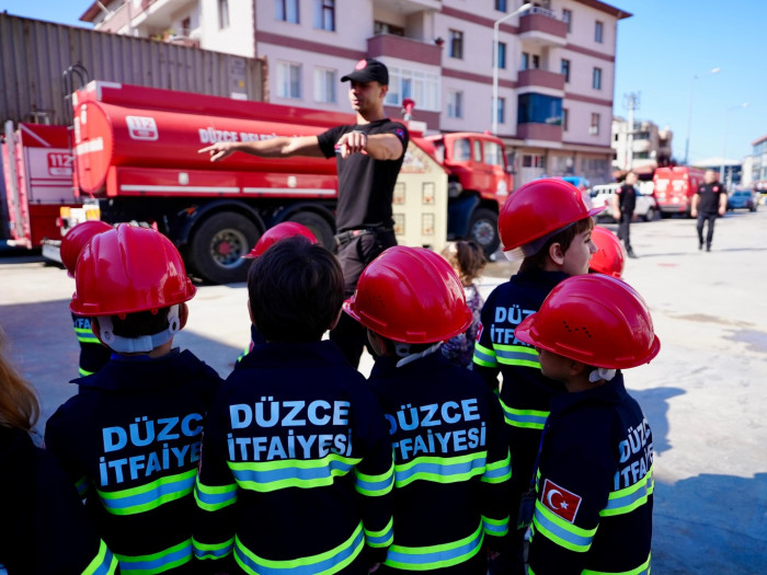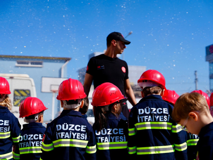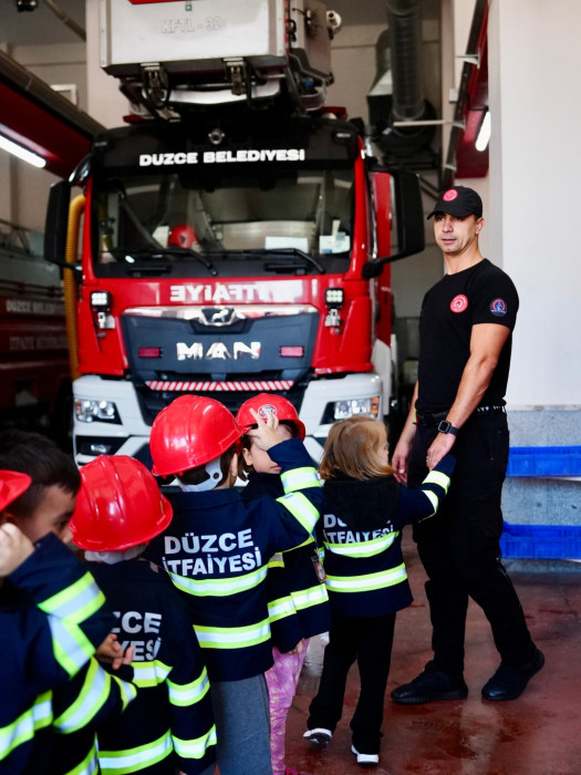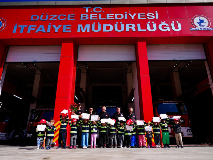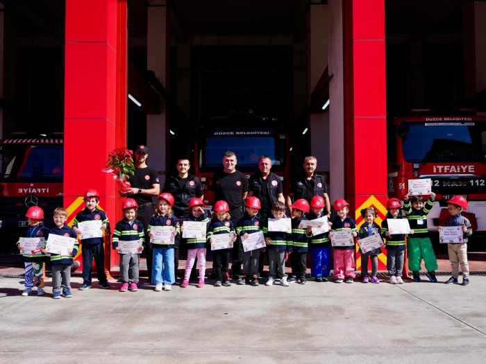 İtfaiye kıyafetlerini giyerek baret takan minikler unutulmaz bir deneyim yaşadı. Düzce Belediyesi İtfaiye Müdürlüğü, İtfaiye Haftası’nda minik misafirlerini ağırladı.