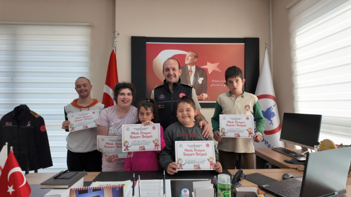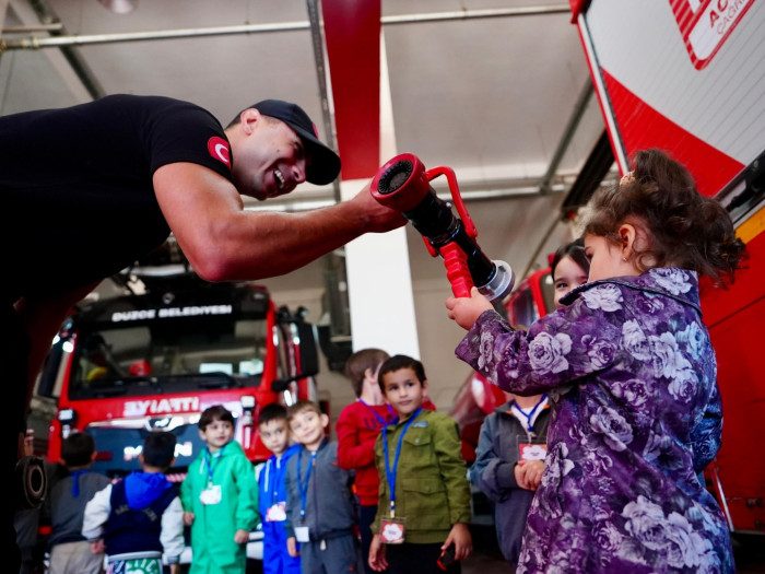 İsabet Okulları Leman Seven Anaokulu’ndan 16 minik çocuk ile Bir Umut Özel Eğitim ve Rehabilitasyon Merkezi’nin özel öğrencileri, Düzce İtfaiye Müdürlüğü’nü ziyaret etti. Kendileri için hazırlanan itfaiyeci kıyafetlerini giyerek baret takan miniklere, itfaiye araçları ve ekipmanları hakkında bilgiler verildi. Ardından da itfaiye hortumu ile yangın söndürme tatbikatı yapan çocuklar, unutulmaz bir denetim yaşadı.Ziyaret sonunda İtfaiye Müdürü Beytullah Yılmaz tarafından minik öğrenciler ile özel çocuklara ‘Minik İtfaiyeci Başarı Belgesi’ takdim edildi.