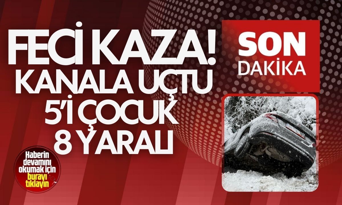 Düzce’de kar sebebiyle kayganlaşan yolda kontrolden çıkan otomobilin kanala uçtuğu kazada 5’i çocuk 8 kişi yaralandı.