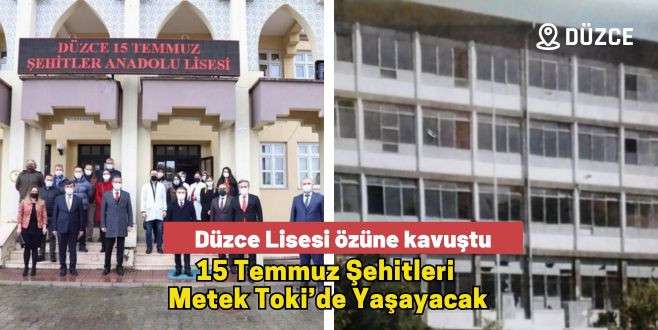 Düzce Lisesi özüne kavuştu 15 Temmuz Şehitleri Metek Toki’de Yaşayacak