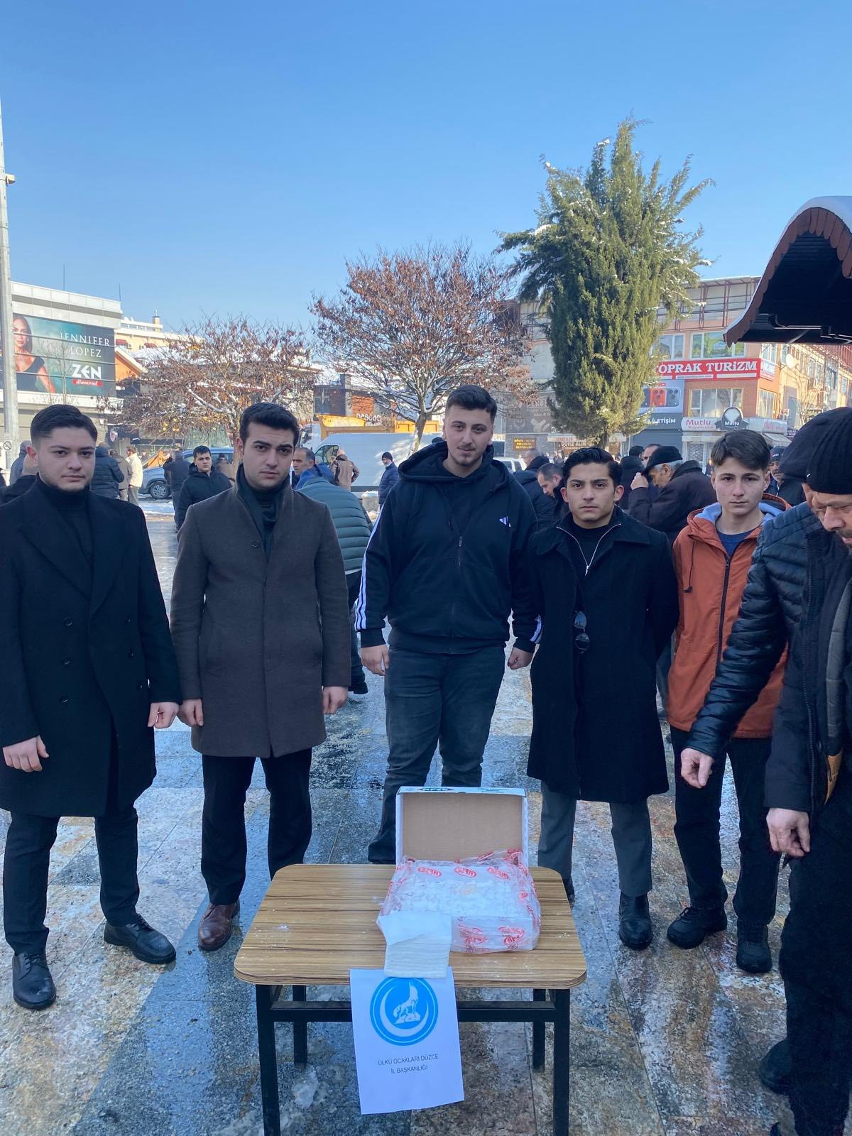 Ülkü Ocakları Düzce İl Başkanlığı, DEAŞ terör örgütüne yönelik operasyonda şehit olan Akçakocalı Şehit Turgut Külünk ve tüm şehitler anısına Merkez Büyük Cami önünde lokum dağıttı.