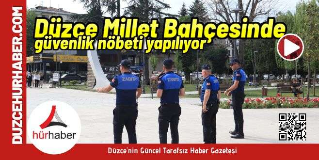Düzce Belediyesi güvenlik amirliğine bağlı 2 kişi akşam 17.30-08.30 saatlerinde devreye halinde güvenliği sağlayacak. Millet Bahçesinin güvenliğini sağlayacak olan personeller, herhangi bir olay geliştiğinde anında kolluk kuvvetlerine bilgi verecek ve Millet Bahçesini kontrolsüz bırakmayacak.Düzce Belediyesi Zabıta Müdürlüğü ekiplerin 4 zabıta memuru da gündüz devraldıkları nöbeti 24.00’a kadar sürdürecek. Öte yandan zabıta ekipleri gece İstanbul caddesinde de devreye gezecek.