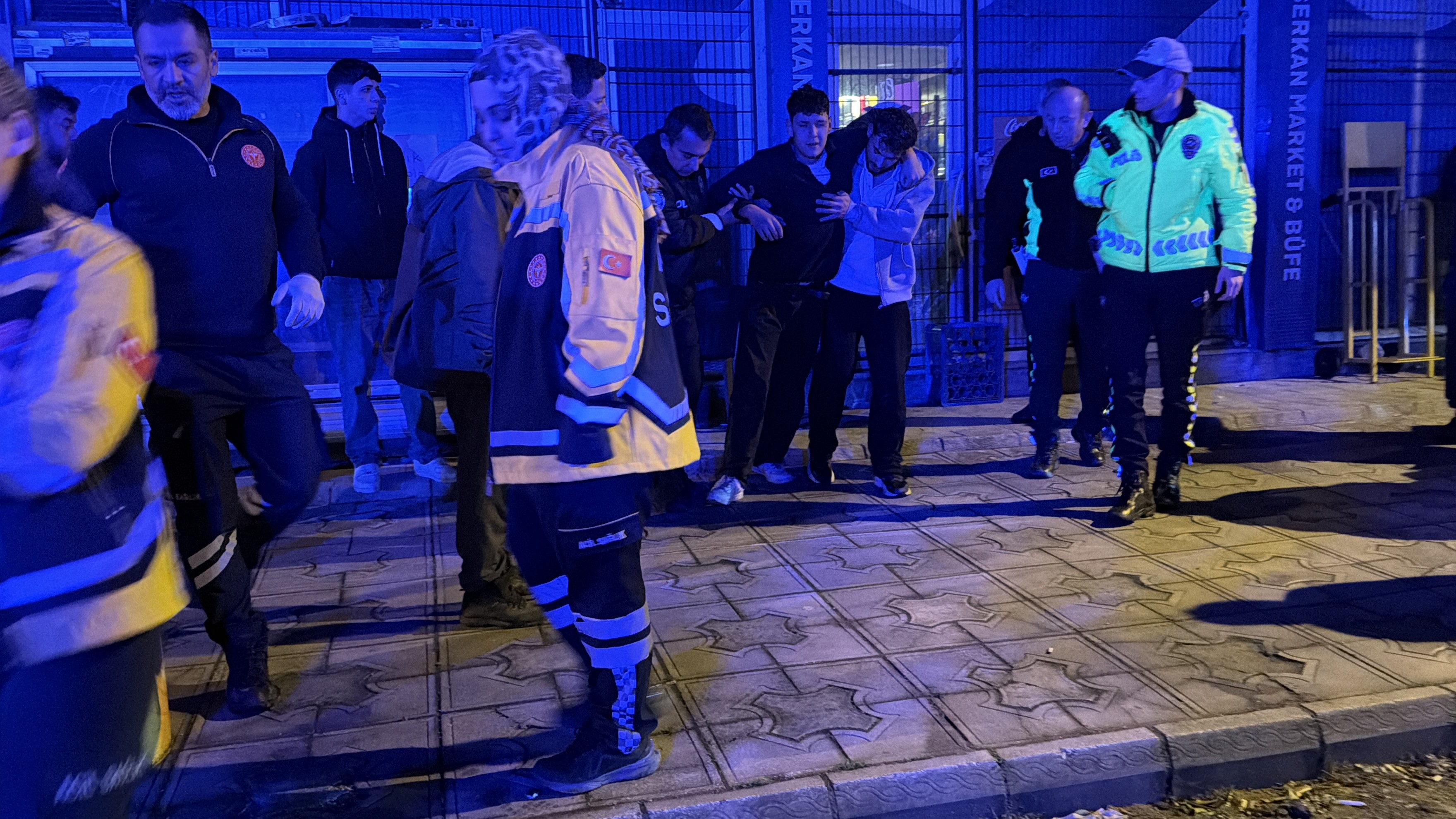 Ayağından ciddi yara alan şahıs, ambulansa binmek istemeyince polis ekipleri şahsın hastaneye gitmesi için uzun süre dil döktü.