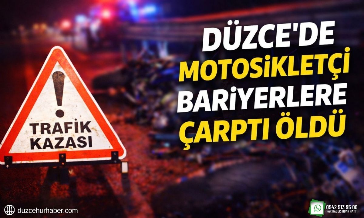 Düzce’de yağış sebebi ile kayganlaşan yolda direksiyon hakimiyetini kaybedip bariyerlere çarpan motosiklet sürücüsü hayatını kaybetti.