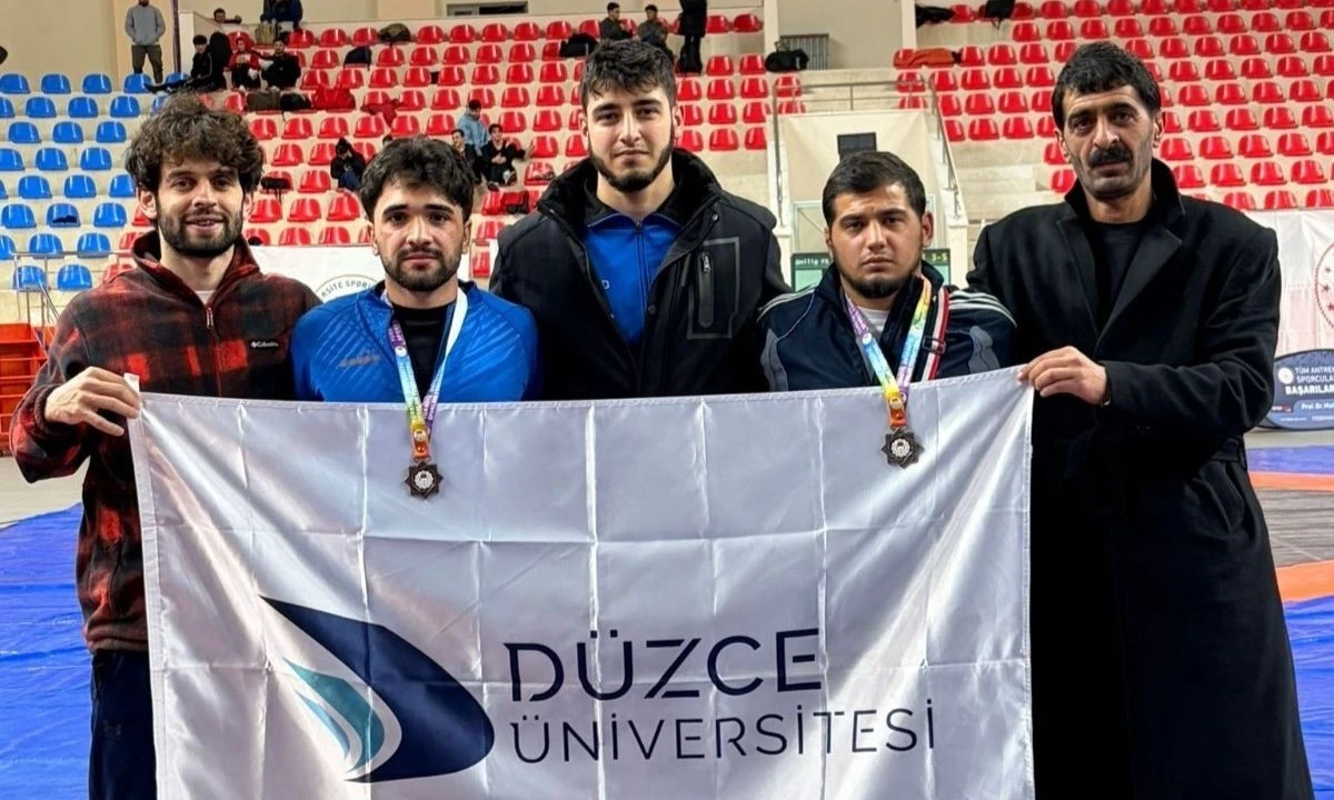 Düzce Üniversitesi öğrencileri, Türkiye Güreş Şampiyonası’nda iki farklı kategoride Türkiye 3.’lüğü elde ederek önemli başarıya imza attı.
