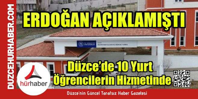Cumhurbaşkanı Erdoğan'ın Kabine toplantısı sonrası gençlere yurt müjdesi vermesinin ardından Düzce’de hizmet verecek yurtlarda belli oldu.Kredi ve Yurtlar Kurumu (KYK) yaz aylarında rezervasyonla 18-25 yaş arası gençlere ücretsiz olarak açılacak. Cumhurbaşkanı Recep Tayyip Erdoğan’ın kabine toplantısı sonrasında yaptığı açıklamada, "81 ilimizin tamamında belirlenen yurtlarımız 15 Temmuz-1 Eylül tarihleri arasında 18-25 yaş arası evlatlarımızın ücretsiz konaklamalarına açık olacaktır.