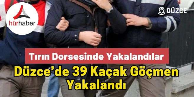 Düzce Cumhuriyet Başsavcılığı koordinesinde jandarma ekipleri tarafından D100 karayolu üzerinde durdurulan tırın dorsesinde, kağıt havlu balyaları arasında kaçak 39 göçmen yakalandı.