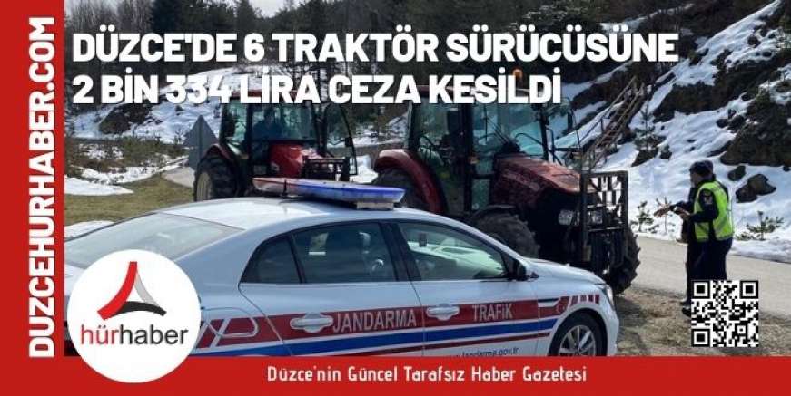 Düzce'de 6 traktör sürücüsüne 2 bin 334 lira ceza kesildi