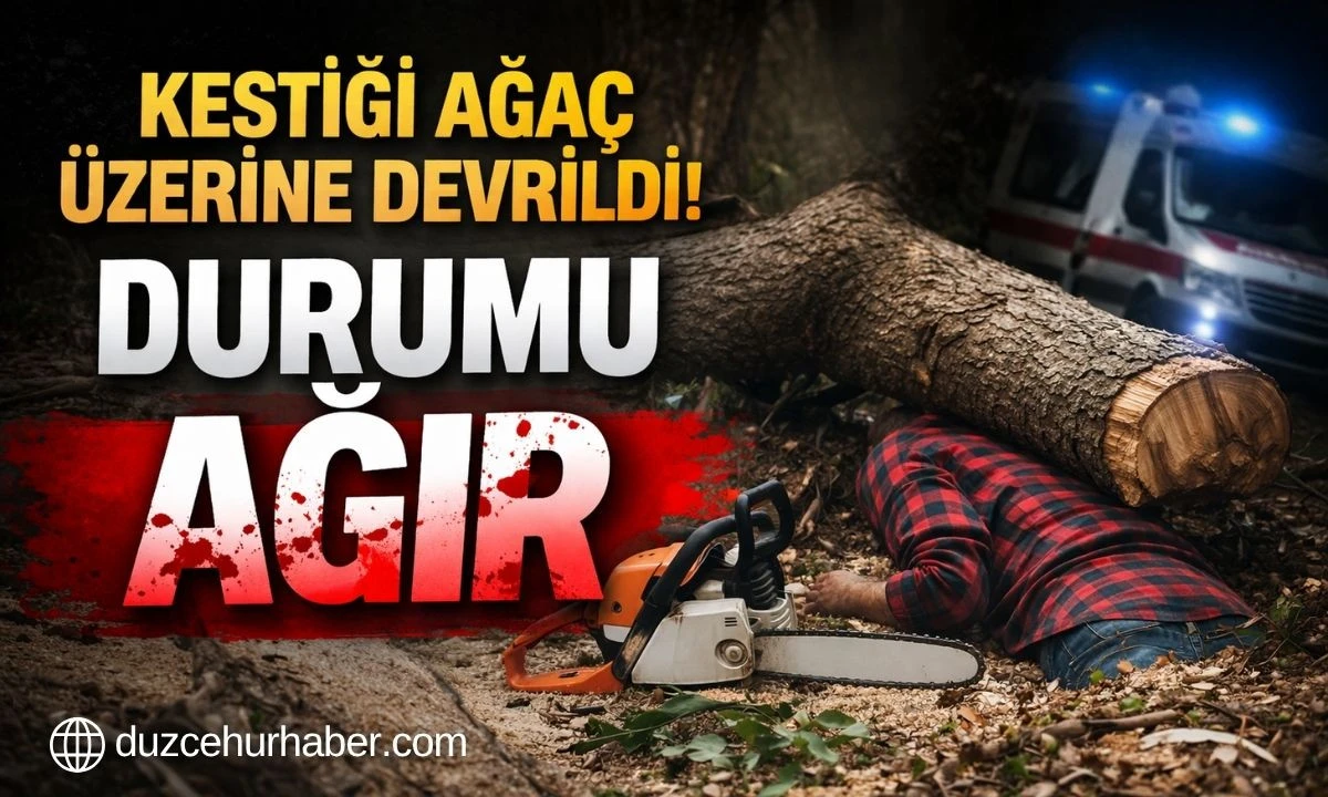 Düzce’de Ağaç Keserken Feci Kaza: Üzerine Devrildi, Durumu Ağır