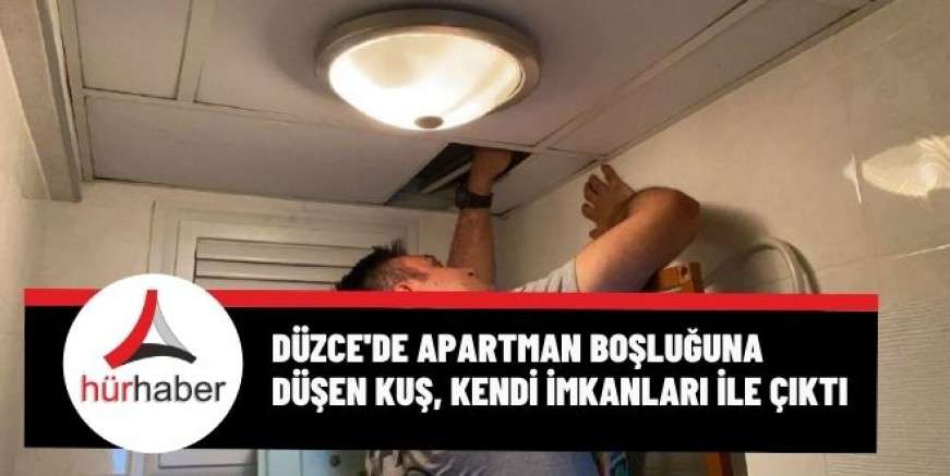 Düzce'de Apartman boşluğuna düşen kuş, kendi imkanları ile çıktı