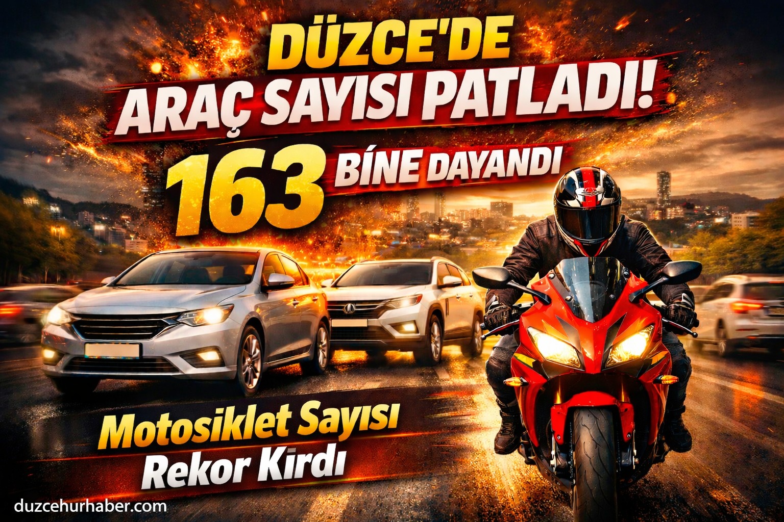 Son bir yılda araç sayısındaki artış dikkat çekerken, özellikle motosiklet ve otomobil sayısındaki yükseliş şehir trafiğini doğrudan etkilemeye başladı.Düzce’de Araç Sayısı 163 Bine Yaklaştı: Bir Yılda Büyük Artış.Türkiye’de araç sayısı her geçen ay artmaya devam ederken, Düzce’deki motorlu taşıt sayısı da hızla yükseliyor. Türkiye İstatistik Kurumu (TÜİK) tarafından açıklanan Şubat 2026 motorlu kara taşıtları istatistiklerine göre, kentte trafiğe kayıtlı araç sayısı 162 bin 957’ye ulaştı.Geçtiğimiz yıllara göre bakıldığında, Düzce’de araç sahipliği oranı sürekli artış gösterirken, özellikle otomobil ve motosiklet sayısındaki yükseliş dikkat çekiyor. Uzmanlara göre bu artışın arkasında şehir nüfusunun artması, ulaşım ihtiyaçlarının değişmesi ve bireysel araç kullanımının yaygınlaşması bulunuyor.