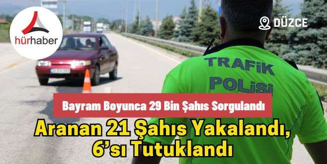 Düzce’de polis ve jandarma ekipleri tarafından bayram boyunca yapılan denetimlerde 29 bin 123 şahıs sorgulandı. Yapılan sorgularda araması bulunan 21 şahıs gözaltına alınırken 6’sı tutuklandı.
