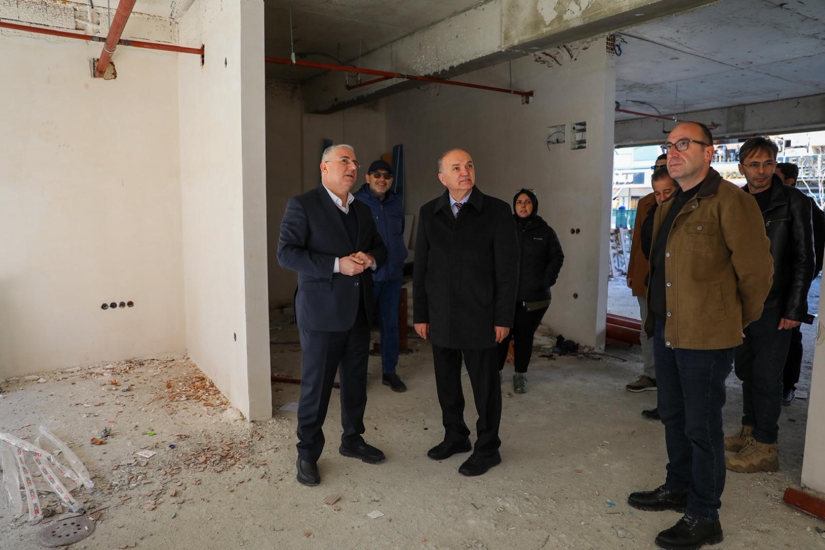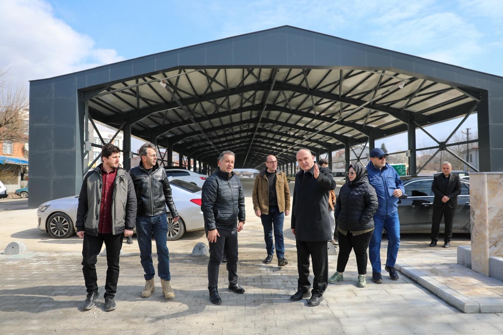 Saha ziyaretlerinin bir diğer durağı Aziziye Mahallesi’nde yapılan tuhafiyeciler pazaryeri oldu. İnşaatı tamamlanan proje kısa süre içinde hizmete açılacak.