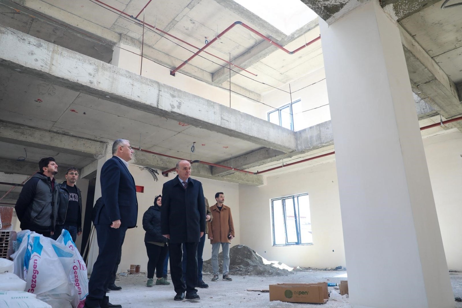 Başkan Özlü, saha programı kapsamında BELTAŞ Sanayi Sitesi inşaatında da incelemelerde bulundu.