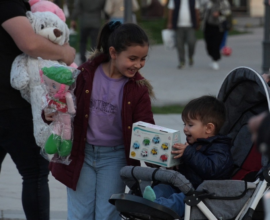 Yardımsever davranışlarıyla dikkat çeken miniklere, belediye tarafından çeşitli oyuncaklar hediye edildi.