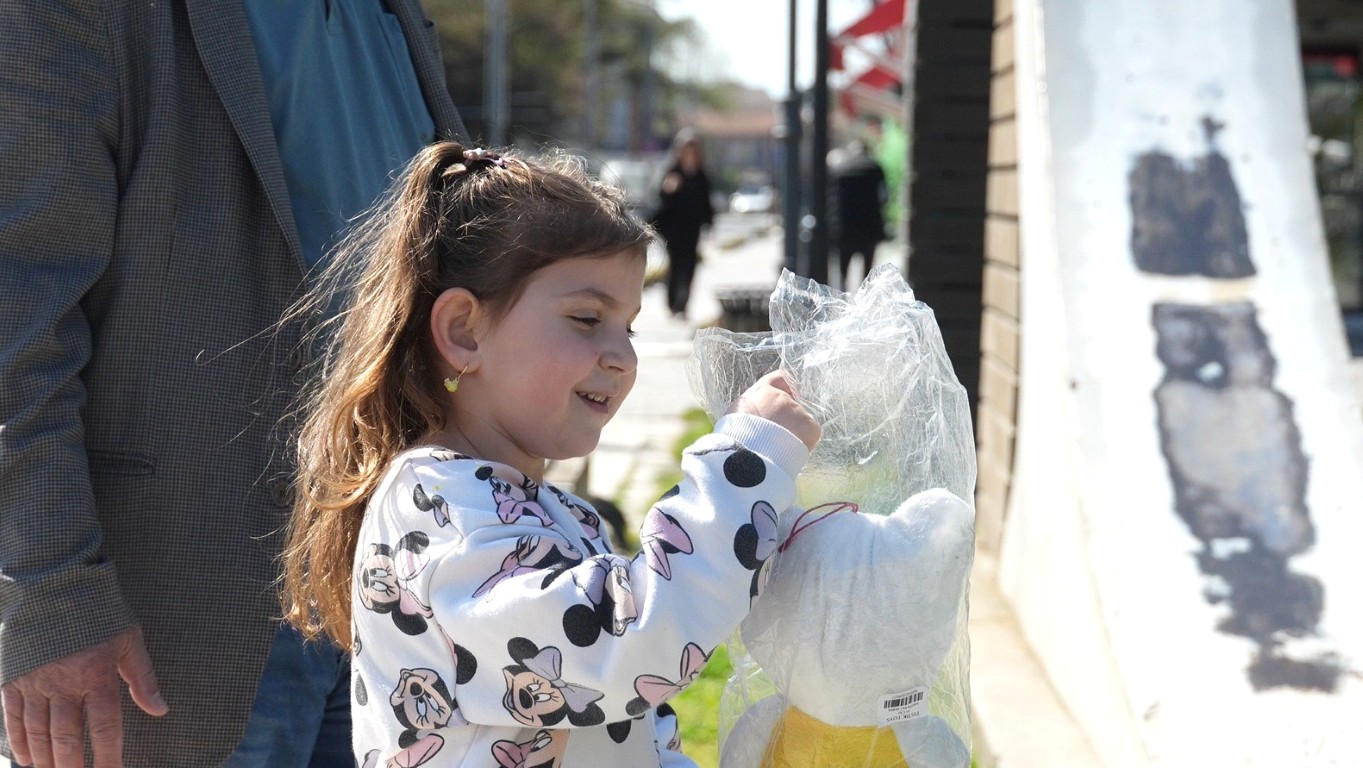 Düzce Belediyesi Basın Yayın ve Halkla İlişkiler Müdürlüğü tarafından hazırlanan çalışmada, senaryo gereği bir personel kucak dolusu oyuncakla sokakta yürürken oyuncakları bilerek yere bıraktı.