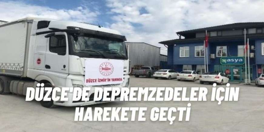 Düzceliler merkez üssü Seferihisar olan ve İzmir merkez'de çok sayıda binanın yıkıldığı depreme kayıtsız kalamadı. Depremzedeler için seferber olan Düzce'de Valilik koordinesinde su üretimi yapan Asya Su firması ile Düzce Kamyoncular ve Taşıyıcılar Kooperatifi ortaklığında 1 tır içme suyu İzmir'e gönderildi. İzmir'e gönderilen tır'da, 8 bin 64 adet 1,5 litre ve 26 bin 208 adet 0,5 litreik şişeler olmak üzere toplamda 25 ton 200 litre içme suyu depremzedeler için hazırlandı. Hazırlanan 25 bin 200 litrelik içme suyu Düzce Kamyon ve Tır Motorlu Taşıyıcılar Kooperatifinin tahsis ettiği tıra yüklendi. Düzce Valiliği tarafından İzmir'e gönderilen yardım tırı hakkında yapılan yazılı açıklamada, “Acımız ortak. Depremin yol açtığı acıyı bir nebze de olsa dindirmek, depremden etkilenen vatandaşlarımıza destek olmak için yardım tırımızı deprem bölgesine göndermiş bulunuyoruz. Düzce tek vücut İzmir'in yanında” ifadelerine yer verildi.