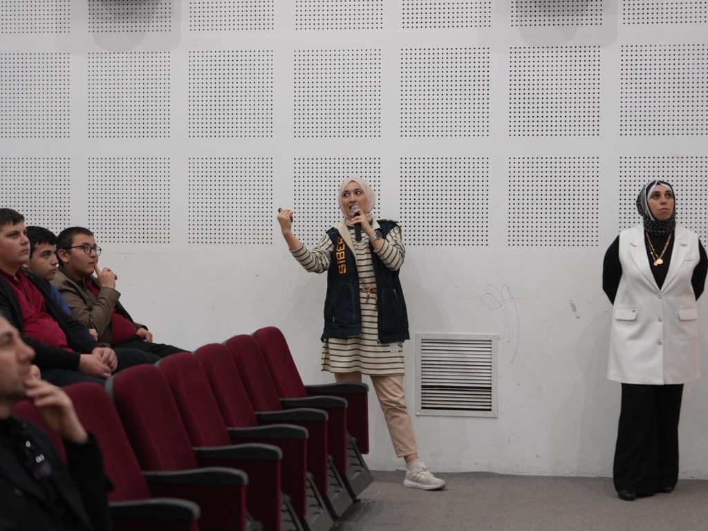 Uzman ekipler, öğrencileri dijital ortamda karşılaşılabilecek risklere karşı uyararak, siber dünyada dikkat edilmesi gereken kurallar hakkında bilgilendirmede bulundu.