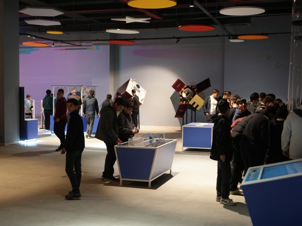Söyleşi öncesinde Bilim Merkezi içerisinde yer alan konsept sergi alanını gezen Düzce Borsa İstanbul Mesleki ve Teknik Anadolu Lisesi öğrencileri, temel bilimler, uzay ve havacılık konularına ilişkin düzenekleri inceleyerek bilimsel içeriklere yoğun ilgi gösterdi.