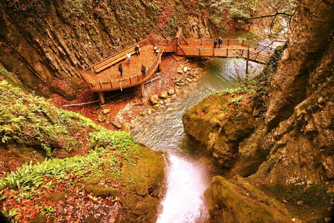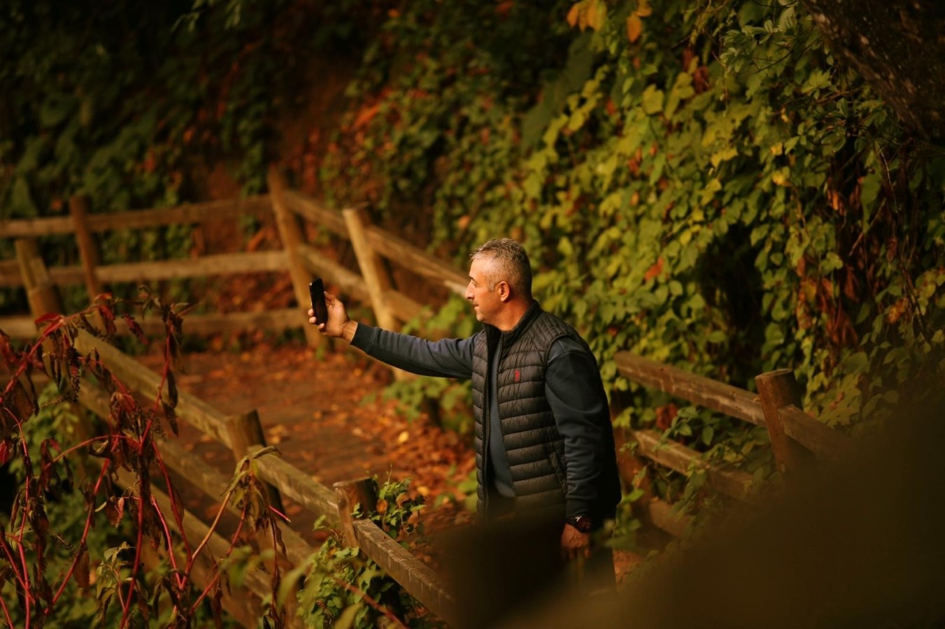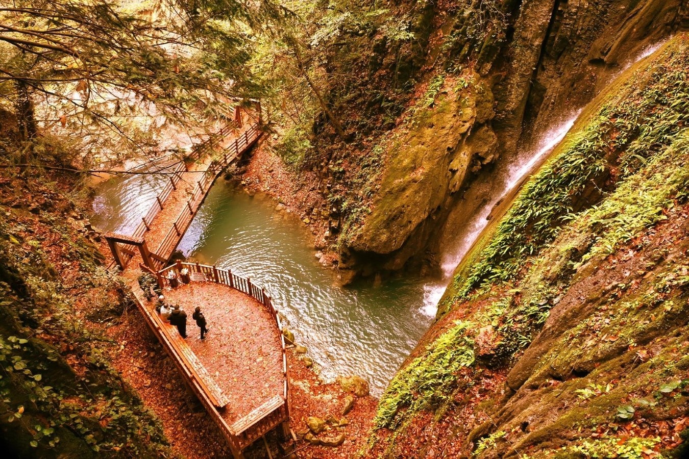 Yürüyüş parkurunda gezinti yapmak, 50 metre yükseklikten akan suyun sesini dinlemek ve etrafı saran zengin bitki örtüsünü görmek için bölgeye gelenler, hazan mevsiminin son günlerini fotoğraf çekerek ölümsüzleştiriyor.