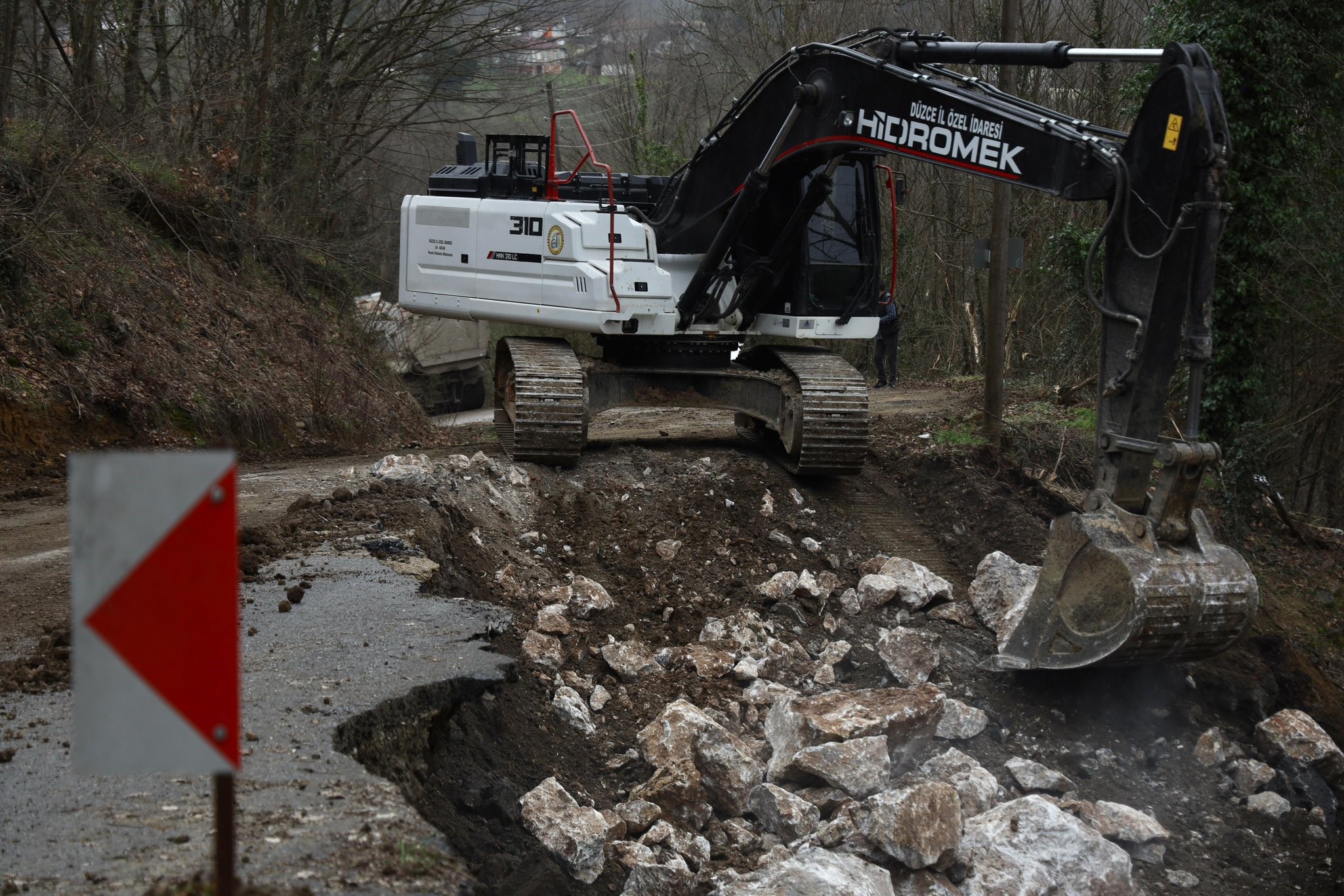 Düzce'deki heyelan etkilenen bölgelerde, Yol ve Ulaşım Hizmetleri Müdürlüğü ekiplerinin gayretleriyle iyileştirme ve onarım işlemleri sürdürülüyor.