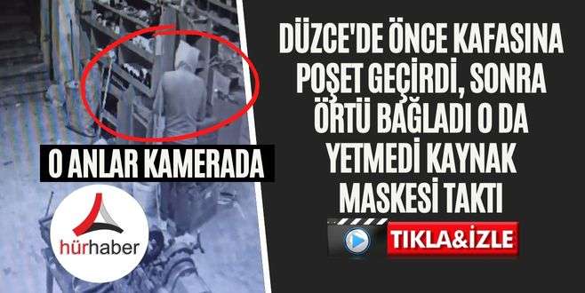 Acemi hırsız tanınmamak için neler yaptı neler.Önce kafasına poşet geçirdi, sonra örtü bağladı o da yetmedi kaynak maskesi taktı