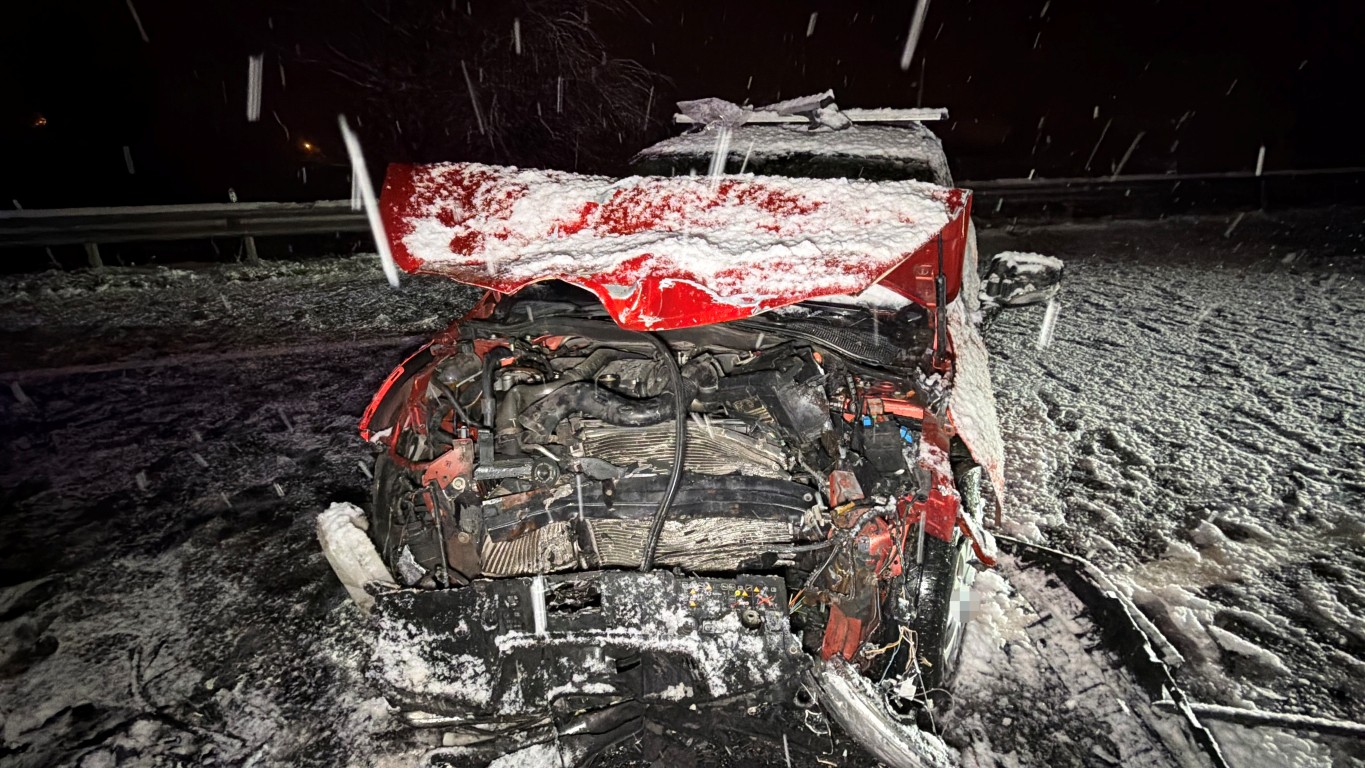 Düzce’de yoğun kar yağışının yaşandığı Gölyaka bağlantı yolunda kayganlaşan yolda iki araç kafa kafaya çarpıştı.
