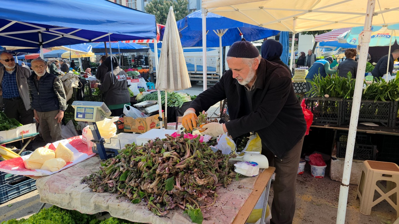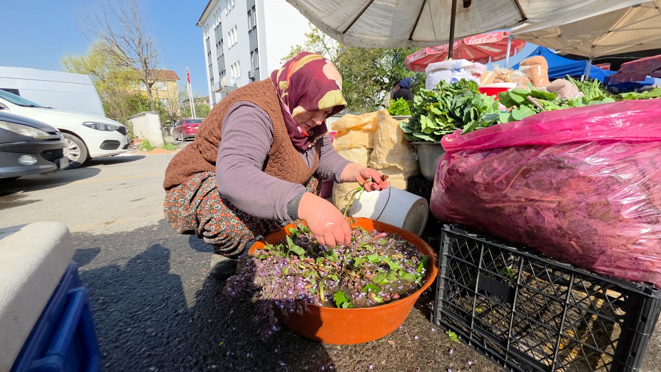 Düzce’nin yüksek kesimleri ve dik yamaçlarında bahar aylarında kendiliğinden yetişen kaldirik otu, köylü pazarlarındaki tezgahlarda yerini aldı.