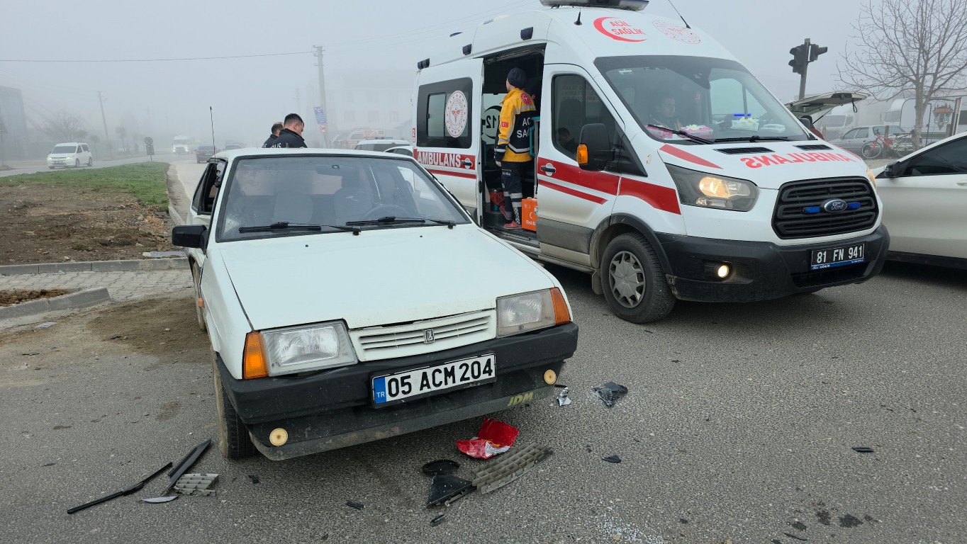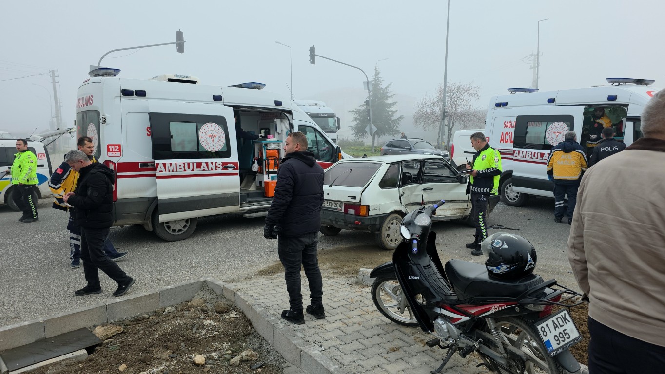 Edinilen bilgilere göre, şehir merkezi istikametine seyreden A.T. idaresindeki 05 ACM 204 plakalı Lada marka otomobil ile D-655 karayoluna çıkmaya çalışan O.B. yönetimindeki 14 ADZ 015 plakalı Fiat marka otomobil çarpıştı.