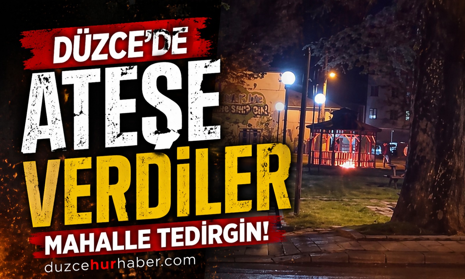 Düzce’de gece saatlerinde parkta kaydedilen görüntüler tedirginlik yarattı. Kamelya içinde ateş yakıldığı anlar cep telefonu kamerasına yansırken mahalle sakinleri endişe duydu.
