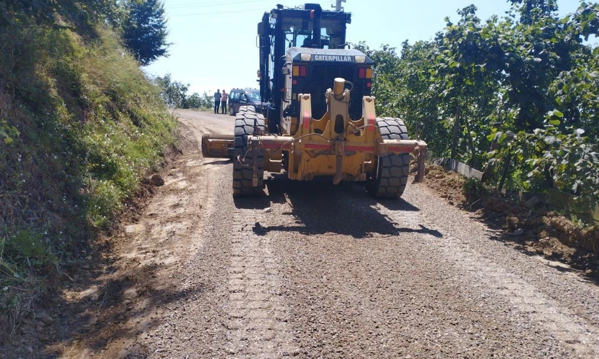 Düzce’de köy yollarında malzemeyle bakım çalışmaları tüm hızıyla devam ediyor.