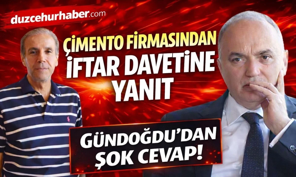 Gündoğdu, davete katılmayacağını açıklarken kamuoyuna yansıyan bazı ifadelerin gerçeği yansıtmadığını savundu.Marmara Çimento’nun sahibi Hüseyin Gündoğdu, yaptığı yazılı açıklamada Düzce Belediye Başkanı Faruk Özlü’nün kendisine yönelik çağrısına yanıt verdi. Gündoğdu, Özlü’nün davetine katılmayacağını belirterek, kamuoyunda yer alan bazı söylemlerin doğru olmadığını ifade etti.
