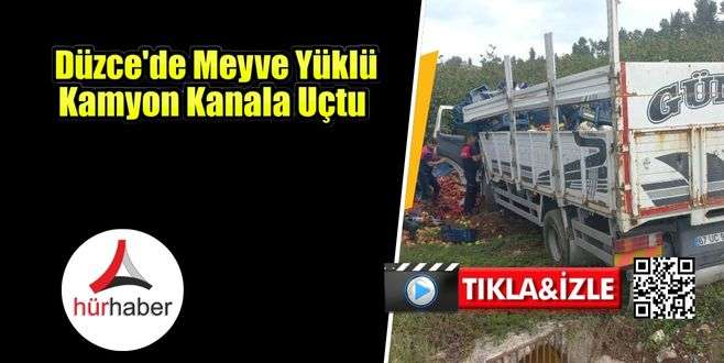 Düzce'de Meyve Yüklü Kamyon Kanala Uçtu Düzce, Son Haber Düzce Hür Haber