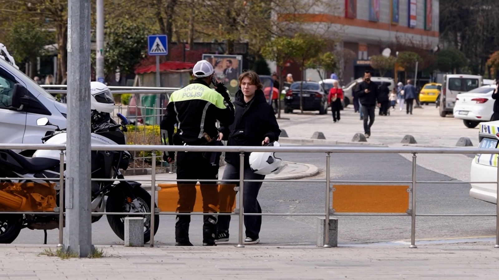 Bir diğer senaryoda ise görme engelli bir vatandaşın yoğun trafikte karşıya geçmeye çalıştığı anlar canlandırıldı.
