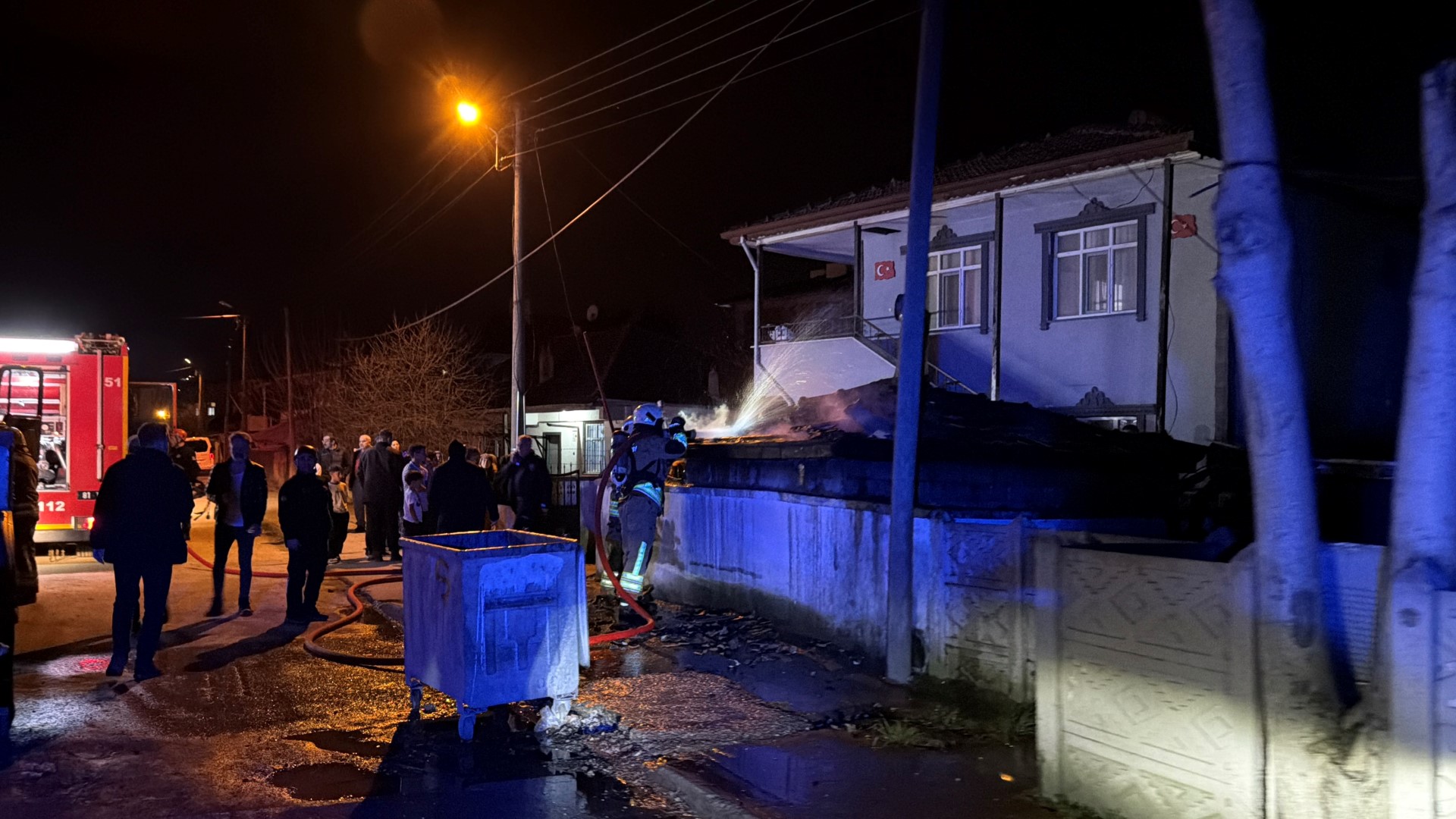 2212. Sokak'taki bir evin bahçesinde, şiddetli rüzgarın da etkisiyle başlayan yangın, itfaiye ekiplerinin hızlı müdahalesi sayesinde daha da büyümeden söndürülebildi.