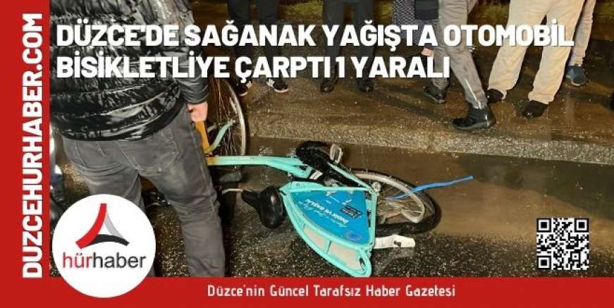 Düzce'de Sağanak yağışta otomobil bisikletliye çarptı 1 yaralı