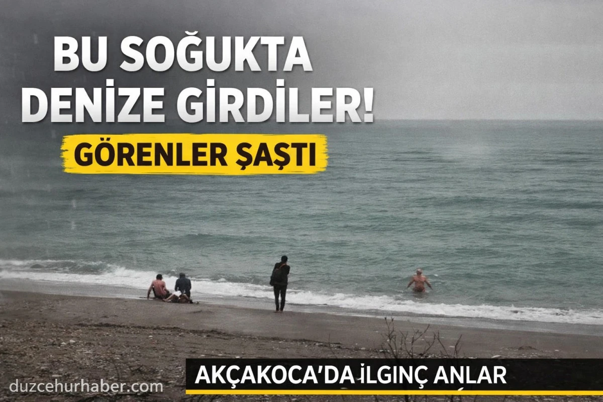 Düzce’nin Akçakoca ilçesinde soğuk hava ve yağmura rağmen denize giren vatandaşlar, görenleri şaşkına çevirdi.