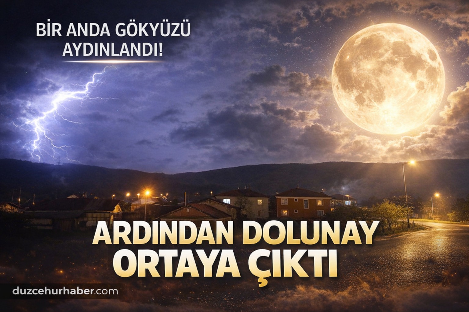 Düzce’de Şimşekler Gökyüzünü Aydınlattı, Ardından Dolunay Büyüledi