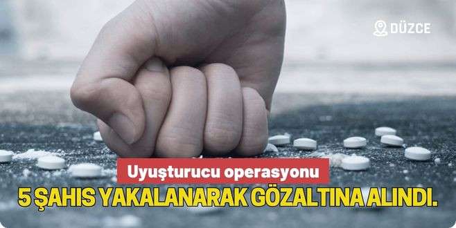 Düzce İl Emniyet Müdürlüğü ekiplerince yapılan uyuşturucu operasyonunda 5 şahıs yakalanarak gözaltına alındı.