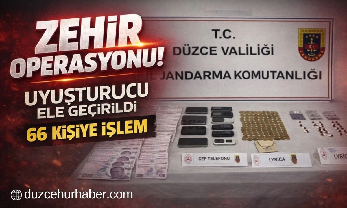 Düzce’de emniyet ve jandarma ekiplerinin son bir haftada düzenlediği narkotik operasyonlarında çok sayıda uyuşturucu madde ele geçirildi, 66 şüpheli hakkında işlem yapıldı.