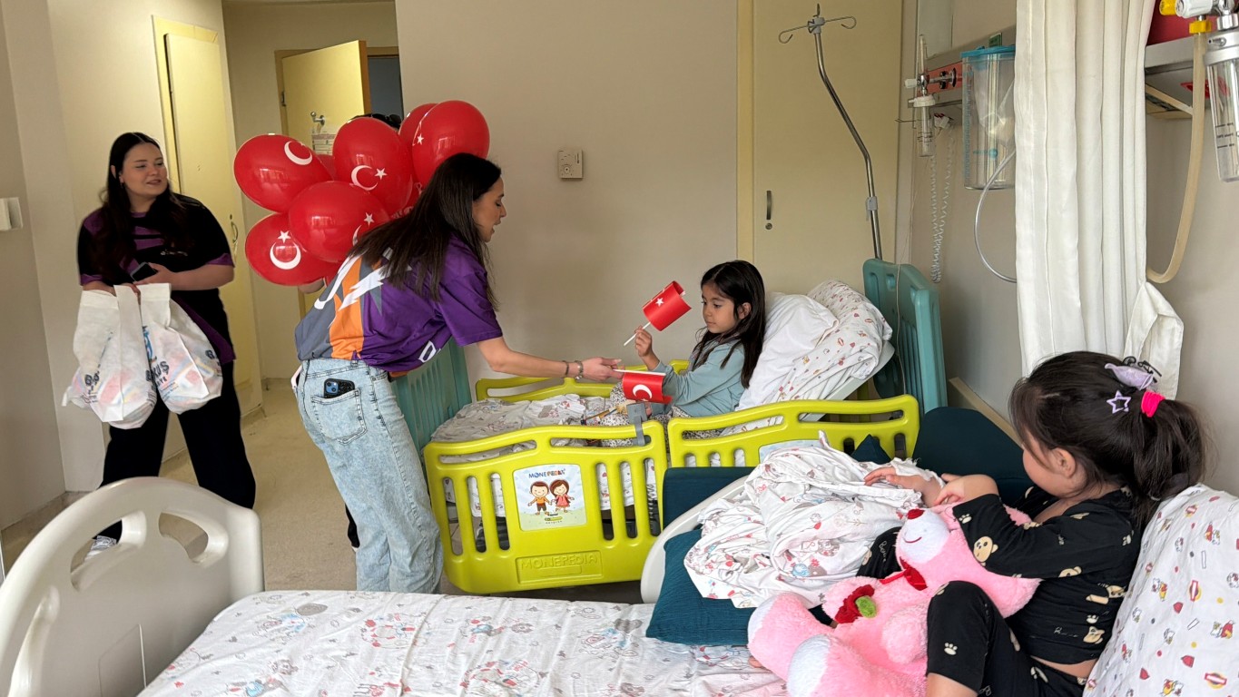Düzce’de gönüllü öğrenciler, hastanede tedavi gören çocukları ziyaret ederek 23 Nisan sevincini onlara taşıdı. Ortaya duygusal anlar çıktı.