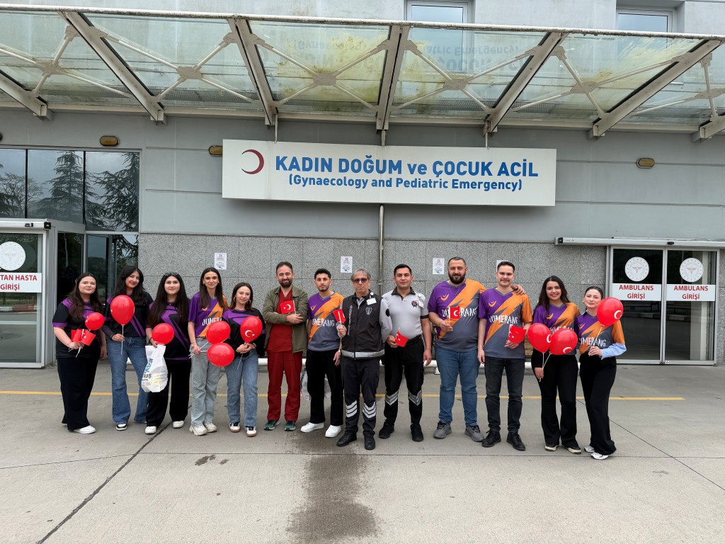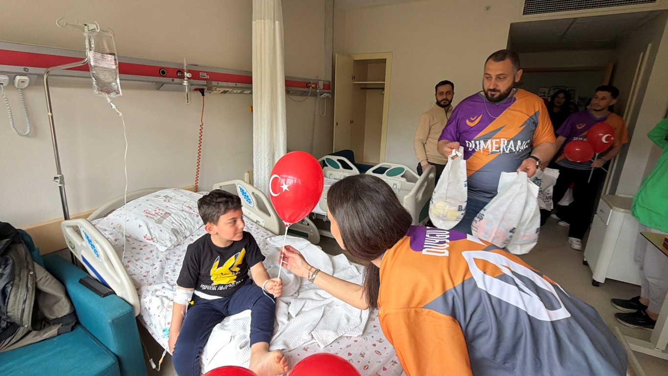 Dümerang öğrenci grubu tarafından gerçekleştirilen etkinlikte, Düzce Atatürk Devlet Hastanesi’nde tedavi gören çocuklara hediyeler, balonlar ve Türk bayrakları dağıtıldı.Bayram kutlamalarına katılamayan çocuklar için düzenlenen ziyaret, duygusal anlara sahne oldu. Miniklerin yüzlerindeki tebessüm dikkat çekti.