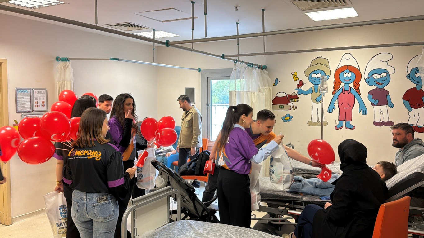 Dümerang öğrenci grubundan Şevval Öztürk, 23 Nisan’ın çocuklar için çok özel bir gün olduğunu belirterek, “Ekip arkadaşlarımızla birlikte hastanede tedavi gören çocuklarımızı ziyaret ederek onların bayram sevincine ortak olmak istedik.