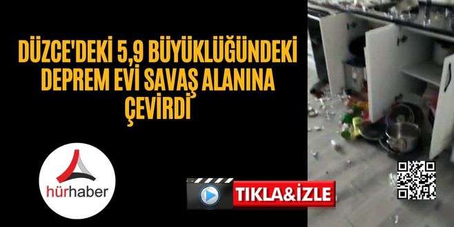 Düzce'de meydana gelen 5,9 büyüklüğündeki depremin ardından bir ev adeta savaş alanına döndü. Deprem sırasında evdeki eşyalar devrilirken, mutfak dolaplarında bulunan tabaklarda yere düştü.Merkez üssü Gölyaka ilçesi olan 5,9 büyüklüğündeki deprem, Merkez'de bulunan bir binanın 2. katındaki evde maddi hasara sebep oldu. Sarsıntı sırasında televizyon, kitaplık ve dolaplarda bulunan eşyalar yere düştü. Evde yaşayanlar, televizyonunun önüne yastık koyarak muhtemel bir sarsıntıya karşı önlem almaya çalıştı. Yatak odasında bulunan gardırobun kapağının da deprem esnasında düştüğü öğrenildi. Depremin evde bıraktığı hasar, ev sahibi tarafından görüntülendi.