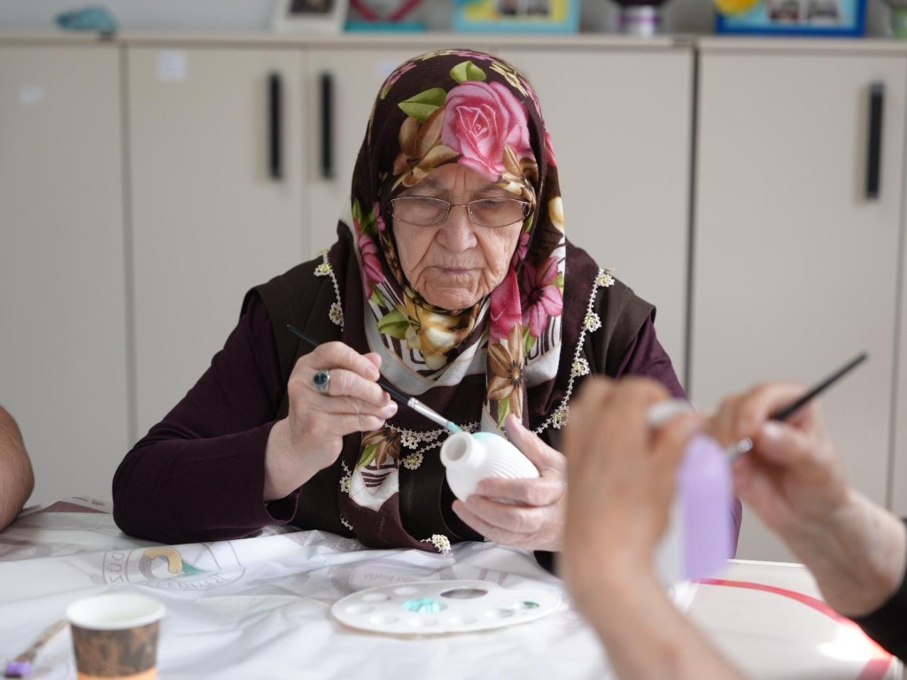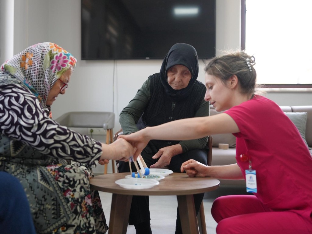 Servisle evlerinden alınan hastalar, merkeze geldiklerinde sağlık kontrollerinden geçirilerek gün boyunca çeşitli aktivitelerle destekleniyor.