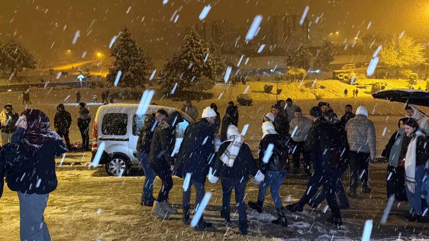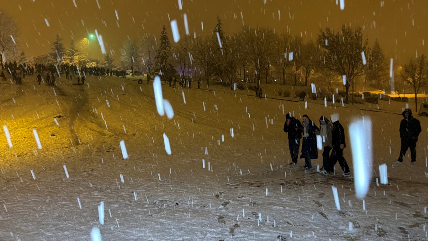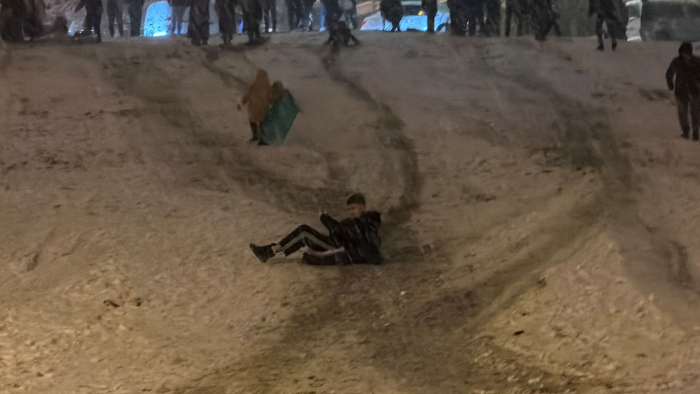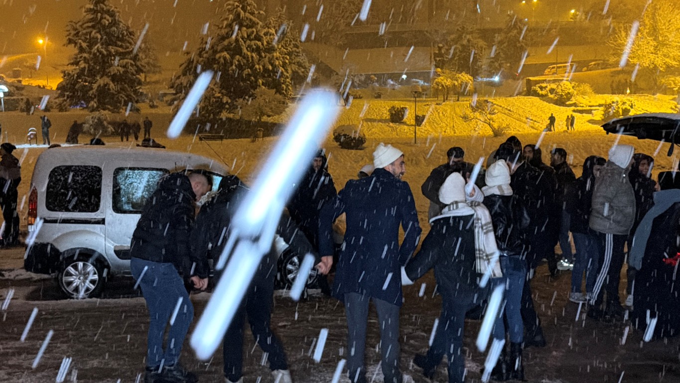 Kimi vatandaşlar kendi imkânlarıyla yaptıkları kızaklarla yokuşlardan kayarken, kimi vatandaşlar ise müzik eşliğinde oynayarak kar yağışını eğlenceye dönüştürdü.