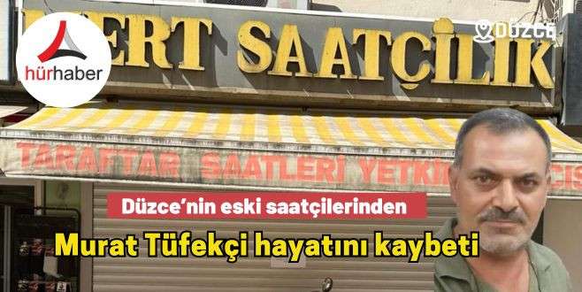 Düzce Merkez Cami yanında uzun yollar saatçilik, saat tamirciliği yapan Murat Tüfekçi bir süredir rahatsızlığı nedeni ile tedavi gördüğü Atatürk Devlet Hastanesinde gece saatlerinde yaşamını yitirdi.