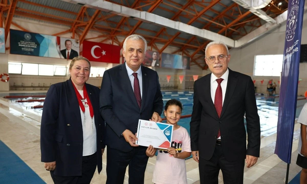 Kurs boyunca hem yüzme becerilerini geliştiren hem de güvenli bir ortamda sporla tanışan çocuklar, eğitim sonunda yapılan yüzme testini başarıyla tamamlayarak katılım belgesi almaya hak kazandı.