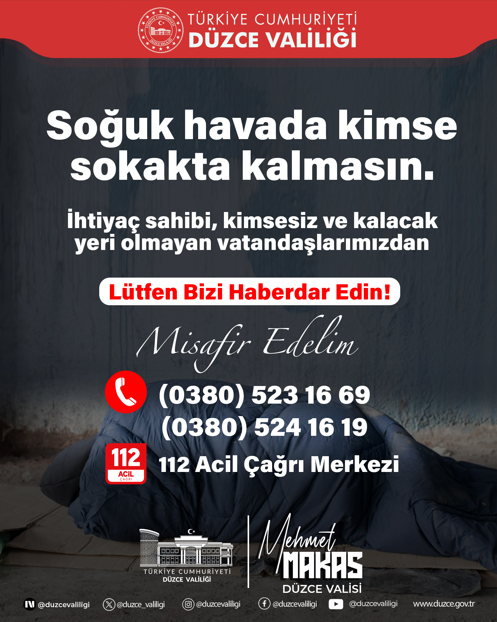 Ayrıca Vali, sokakta kalanları fark eden ya da yardıma ihtiyacı olan kişilerin yetkililere haber vermesini rica etti. Paylaşımda, kimsenin soğukta kalmaması gerektiği ve herkesin yardımlaşması gereken bir ortamın oluşması vurgusu yapıldı. Toplumun her kesimi tarafından büyük takdir toplayan bu davranış, Düzcelilerin gönülleri arasında sıcak bir yer edindi.
